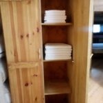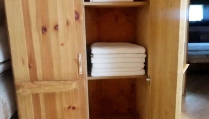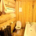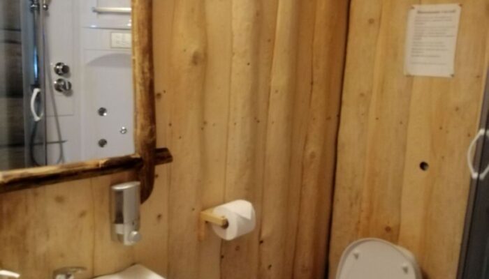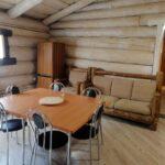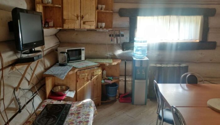 3 отдельных спальни с двуспальными кроватями, в одной спальне детская кроватка. Большой холл с мягкой мебелью; кулер с горячей, холодной питьевой водой; телевизор; большой холодильник; два больших стола и стулья; кухонный уголок с набором необходимой посуды; микроволновая печь,индукционная плитка, электрический чайник, два отдельных санузла – один с душевой кабиной, второй с ванной. Мангал рядом с избой.