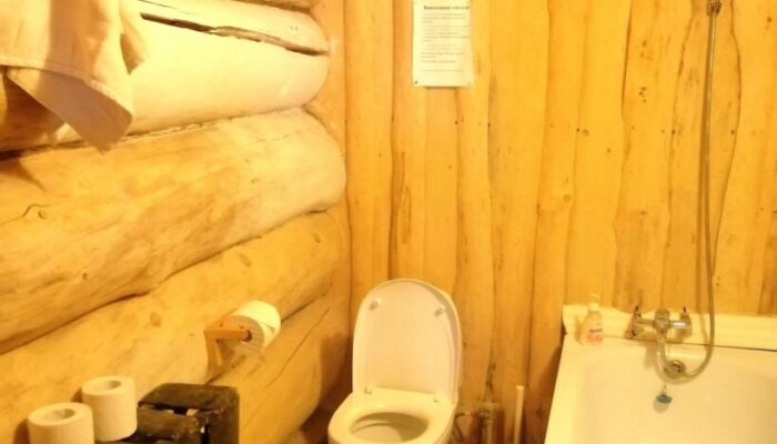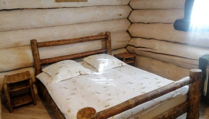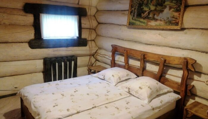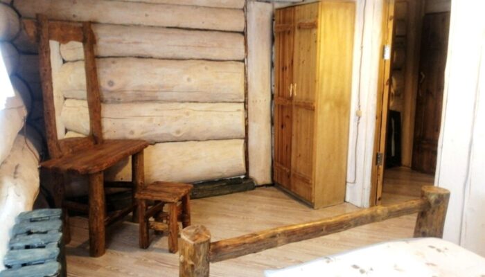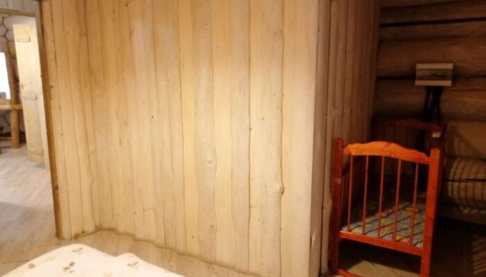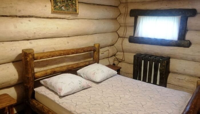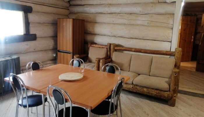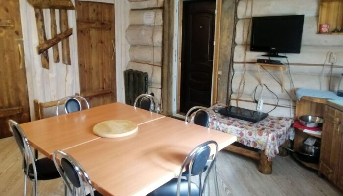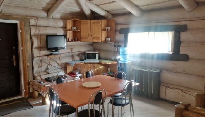 1-этажный деревянный дом — изба из цельных брёвен для большой семьи или дружной компании. Размещение — до 6 человек.