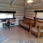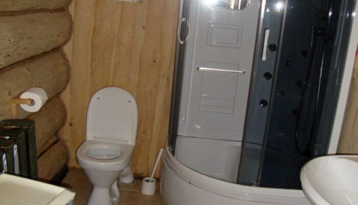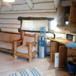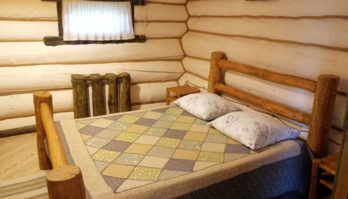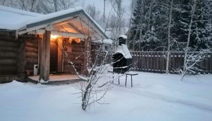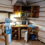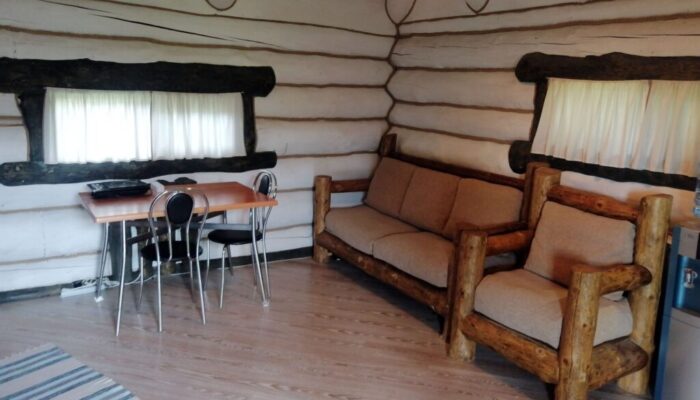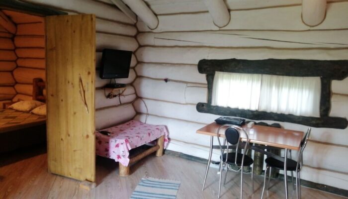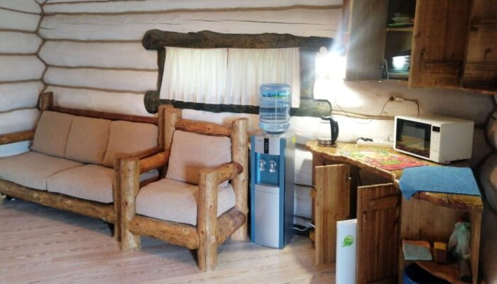 1-этажный отдельно стоящий дом — изба из цельных брёвен. Размещение — 2 основных спальных места.